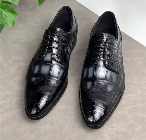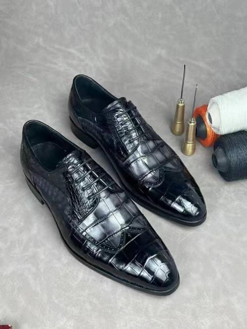 Chaussures richelieus pour hommes en cuir de crocodile exotique authentique, peintes à la main, à lacets, en véritable cuir d'alligator véritable